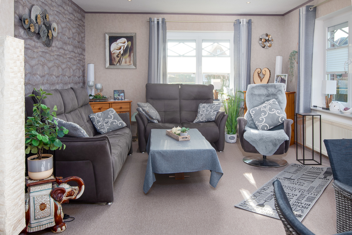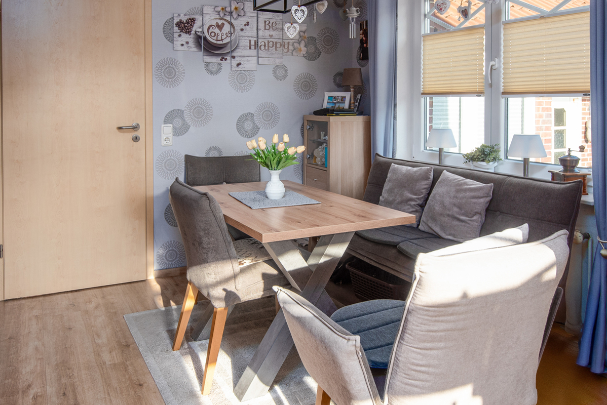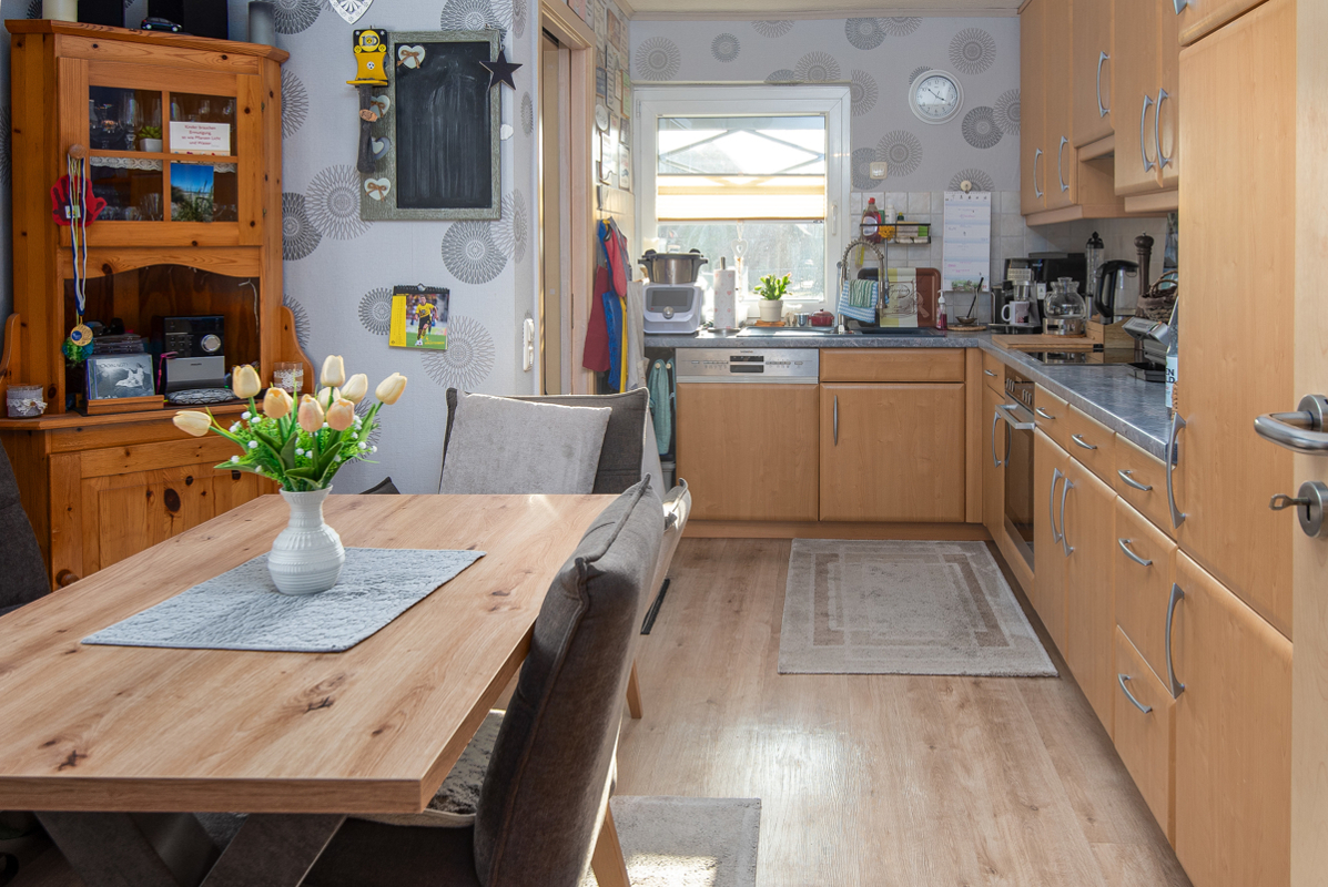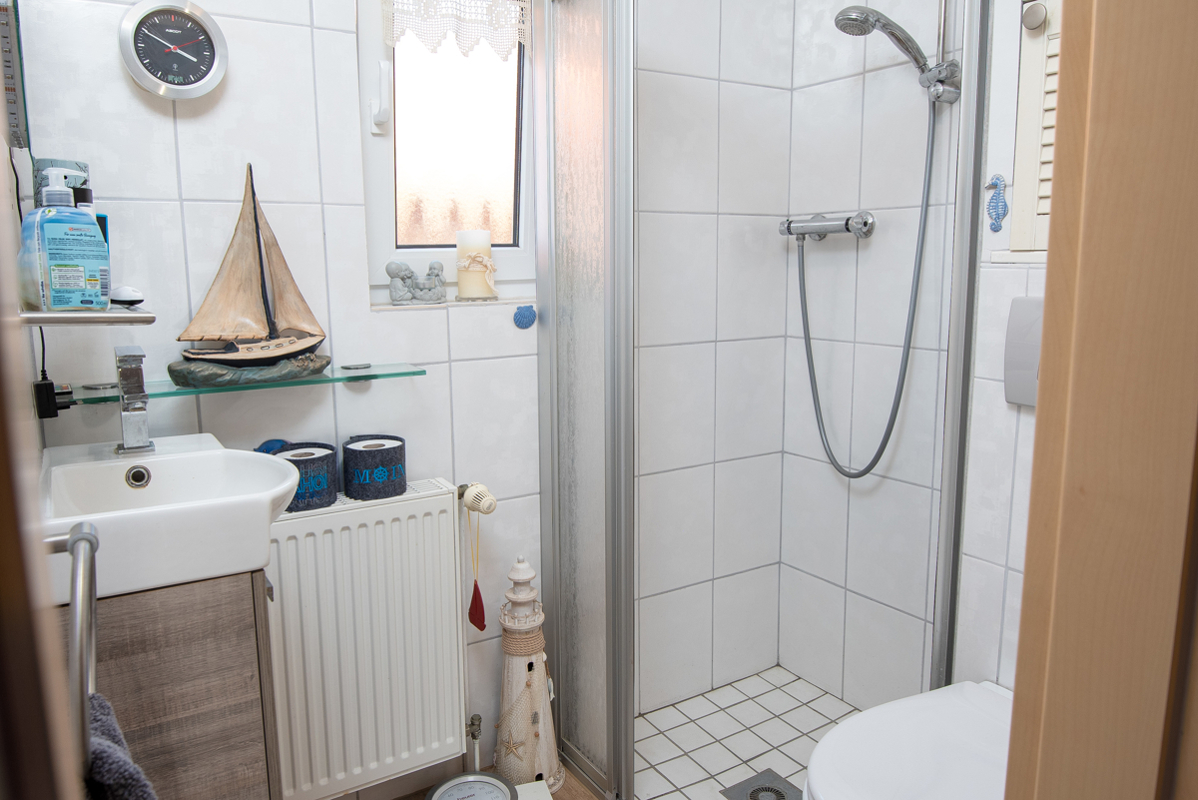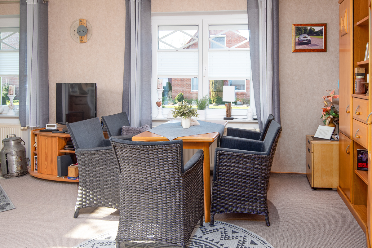 Dieses charmante Einfamilienhaus liegt in idyllischer und ruhiger Lage im beliebten Stadtteil Süderneuland, der zur Stadt Norden gehört. Ob als Erst- oder Zweitwohnsitz – hier genießen Sie ein angenehmes Wohnambiente in einer begehrten Umgebung.Beim Betreten der Immobilie empfängt Sie ein einladender Flur, der – ebenso wie die Küche – mit einem modernen, hellen Vinylboden gestaltet ist. Auf der linken Seite befindet sich das Tageslichtbad, das mit einer komfortablen, ebenerdigen Dusche und einem WC ausgestattet ist. Vom Flur aus gelangen Sie in den Keller, in das großzügige Wohnzimmer sowie in die Küche, die mit einer Einbauküche aus dem Jahr 2003 inklusive Elektrogeräten ausgestattet ist. Von hier aus führt eine Tür direkt auf die Terrasse und in den liebevoll eingefriedeten Garten, der Ihnen Privatsphäre und Erholung bietet. Für gemütliche Stunden im Freien steht zudem eine großzügige, teilweise überdachte Deckterrasse zur Verfügung.