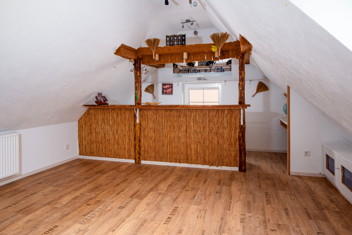 Im Dachgeschoss erwartet Sie ein großes, lichtdurchflutetes Schlafzimmer sowie ein Gästezimmer. Außerdem finden Sie hier den Heizungsraum, einen Abstellraum und das zweite Badezimmer, das mit einer Whirlpooleckwanne und einer Dusche ausgestattet ist.
