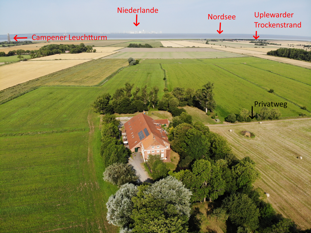 Diese Wohnung finden Sie im historischen "Uplewarder Grashaus" in der Krummhörn in der Nähe des Deiches und des bekannten Trockenstrandes.In direkter Nachbarschaft liegt mit dem Campener Leuchtturm der höchste Leuchtturm Deutschlands.