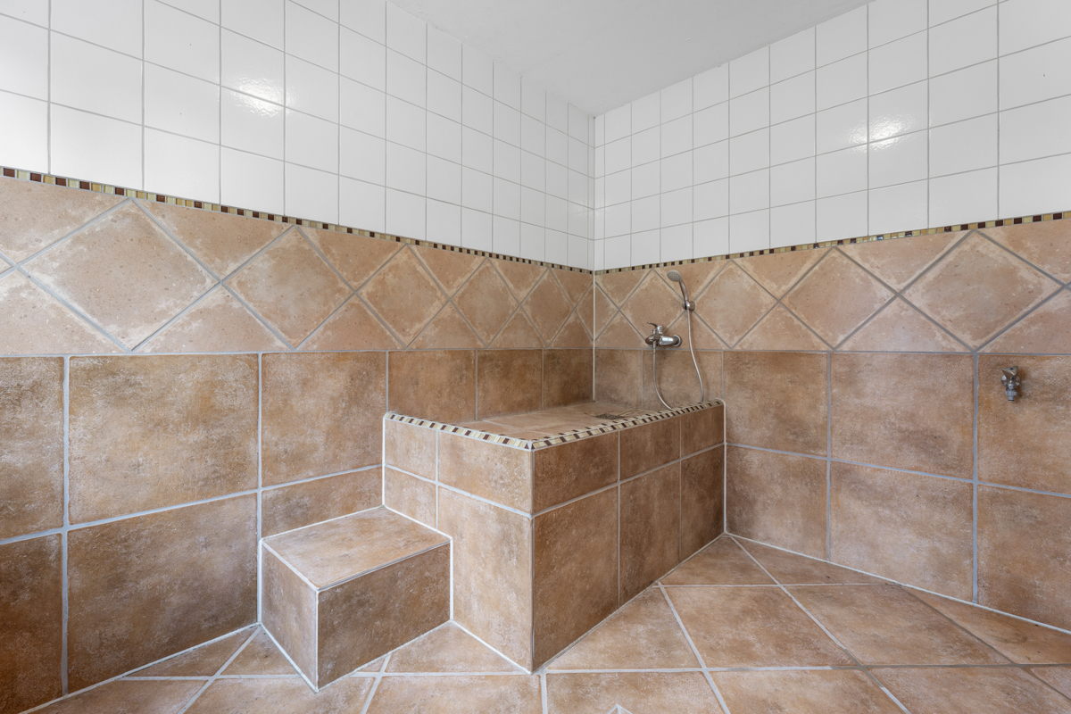 Das Erdgeschoss ist mit großformatigen Terracotta Fliesen ausgestattet. Hier befinden sich der große Wohn/Essbereich mit integrierter Küche und ein sehr schönes, großes Bad mit ebenerdiger Dusche. Das Obergeschoss, in dem sich die beiden Schlafräume sowie ein WC befinden, ist mit hochwertigem und pflegeleichten Laminat ausgelegt.