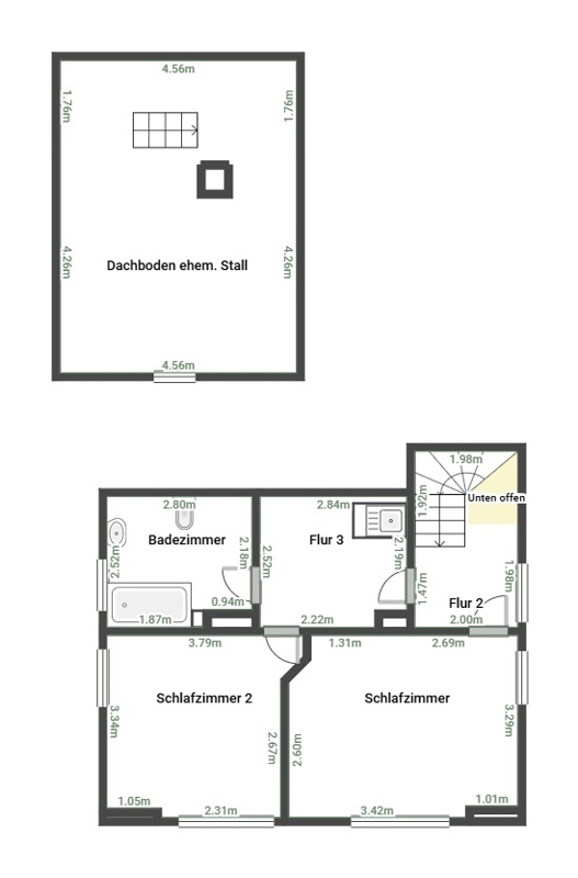 Zum Objekt gehört außerdem ein ehemaliger Stall, der inzwischen teilweise ausgebaut wurde. Dieser Bereich ist nicht in die offizielle Wohnfläche eingerechnet, eröffnet aber vielfältige Nutzungsmöglichkeiten – etwa als Werkstatt, Atelier oder zusätzlicher Stauraum.